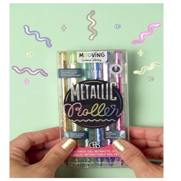 Lapicera retractil roller metalic tinta gel x6